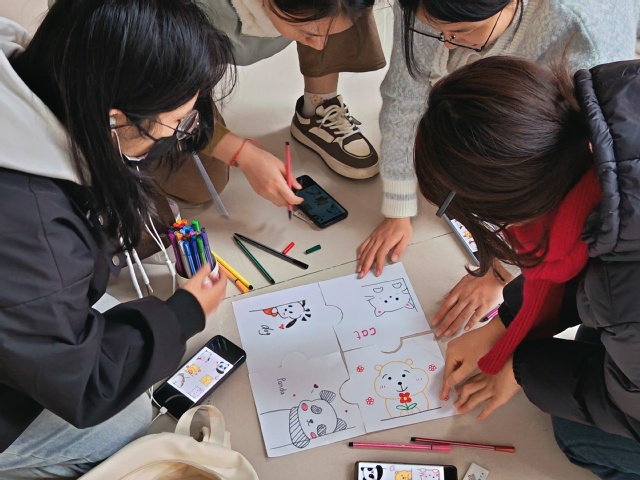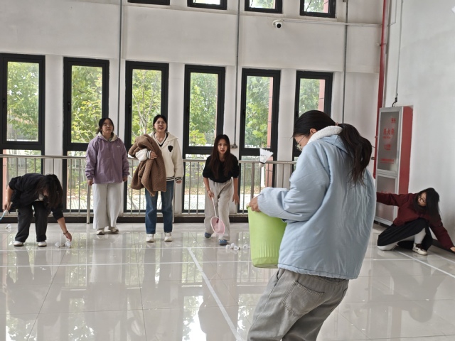 活动设置了“拼字大作战”、“筷子夹羽毛球”、“一起来作画”、“我们都是彼此的一部分”等多项趣味环节。同学们以四人小组为单位,在欢声笑语中展开协作。从紧张刺激的拼字挑战,到默契传递的羽毛球接力,再到共创共猜的集体绘画,每一环节都考验着团队的配合与智慧。尤其是在拼图环节中,同学们亲手绘制、书写并拼接出属于团队的完整画面,不仅锻炼了动手能力,更在合作中深化了彼此的情感联系。