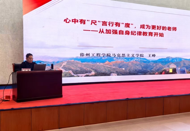 徐州工程学院马克思主义学院教师王峥为新教师们讲授了《心中有尺言行有度,成为更好的老师一从加强自身纪律教育开始》的专题。王峥老师开篇即点明纪律教育对新教师成长的基础性作用。强调,教师不仅是知识的传播者,更是学生思想成长的引路人,心中的尺是党纪国法与师德规范,言行的度是职业操守与育人底线,新教师唯有筑牢纪律根基,方能行稳致远。授课过程中,王峥老师从明尺知度—为何要加强纪律教育持尺守度—要严守哪些纪律规范量尺度行—如何践行纪律要求三个维度展开深入讲解。在明尺知度部分,结合教师岗位特点,剖析了纪律教育与人才培养、学术研究、师德建设的内在关联,通过正反两方面案例,让新教师深刻认识到纪律教育的必要性;在持尺守度环节,重点梳理了课堂教学、学术研究、师生交往、廉洁从教等关键领域的纪律红线;在量尺度行方面,结合自身教学科研经验,提出学纪、知纪、守纪、护纪四步践行法,鼓励新教师将纪律学习融入日常工作,以规范言行彰显教师素养。