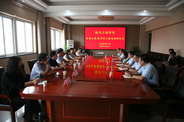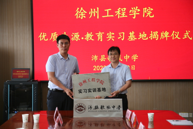 近日,徐州工程学院师范学院党委书记耿中华、院长马衍及学院领导班子成员、各专业负责人等一行赴沛县歌风中学举行校外实习实训基地共建活动。沛县歌风中学党委书记、校长纪认振、学校全体领导班子成员、教导处、信息化中心等负责同志参加了活动。