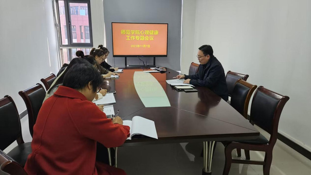 为贯彻落实江苏省教育厅心理健康教育工作会议精神以及校心理健康工作专题会议精神,进一步研究部署我院学生心理健康教育工作,2023年11月7日,师范学院组织召开“师范学院心理健康工作专题会议”。