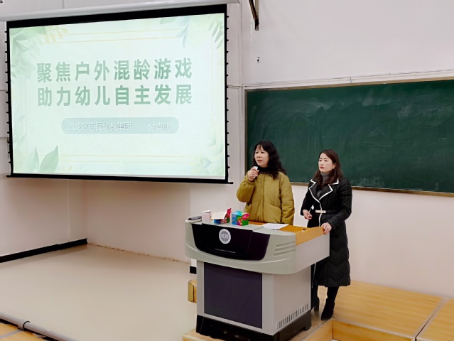 为进一步面向区域、行业办学,深化供给侧人才培养质量,2023年11月29日下午,学前教育(师范)专业邀请云龙区惠民幼教集团付袁明园长来我院作了题为《聚焦户外混龄游戏·助力幼儿自主发展》的专题报告。报告会由学前教研室副主任周晨主持,学前教育专业部分教师与2020级学前教育专业全体学生150余人共同参加了此次专题报告。