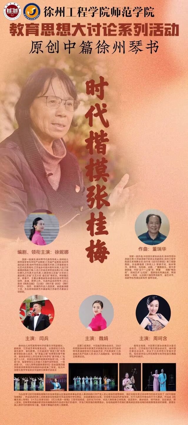 为了积极落实学校新时代本科教育思想大讨论活动实施方案,用中华优秀传统文化教育人,用时代孕育的伟大教育家精神感染人,用大思政的课堂培养人,3月28日师范学院组织特邀徐州琴书代表性传承人徐妮娜老师携《时代楷模张桂梅》演出团队赴师范学院音乐厅首演。徐州工程学院副校长王逢博、学工处处长耿中华到场慰问了演职人员,师范学院四百余名师生观看了演出。