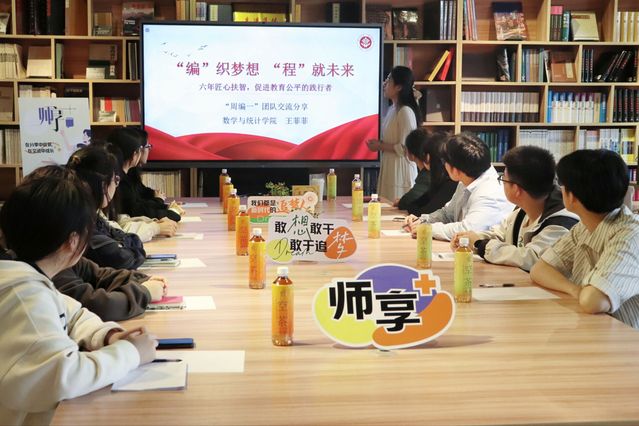 学院邀请数学与统计学院的王菲菲同学进行经验分享与交流,她向大家介绍了自己所在的“周编一”团队历程和个人成长经历,并从多个维度认真解答学生的问题,交流分享经验,最后合影留念。