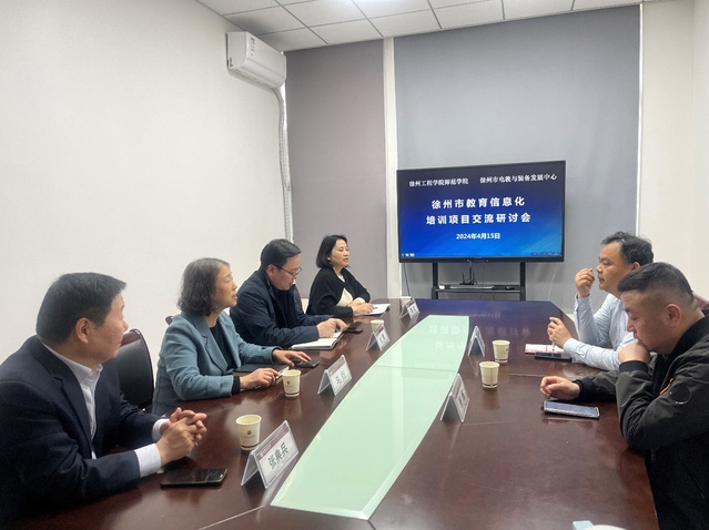4月15日下午,徐州市电教与装备发展中心副主任余长营一行来到师范学院交流研讨,学院院长马衍,副书记李艮,副院长张典兵、周红及有关项目负责人参加研讨。