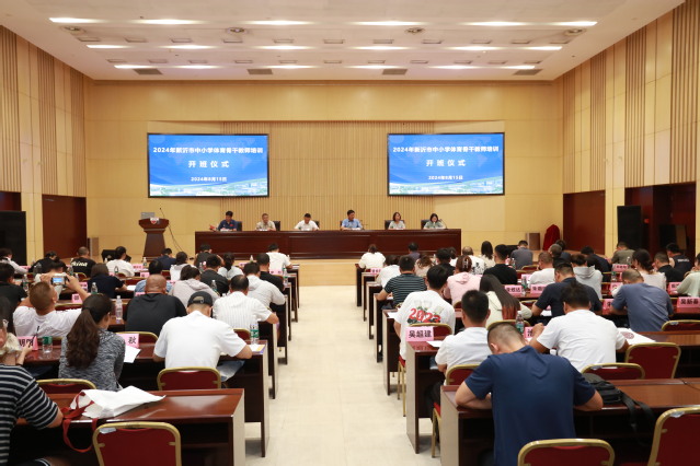 为更好促进体育教师专业发展,促进体育教师在专业知识、科研能力、教育教学能力等各方面都有显著的提高,2024年8月15日上午,由师范学院和体育学院联合承办的2024年新沂市中小学体育骨干教师培训班开班仪式顺利举行。徐州工程学院党委常委、组织部部长涂宝军,新沂市业余体校校长张永超,新沂市业余体校副校长李旭,徐州工程学院师范学院院长马衍,徐州工程学院体育学院党委副书记陈益群出席开班仪式。来自新沂市中小学体育骨干教师90人参加培训。开班仪式由师范学院副院长周红主持。
