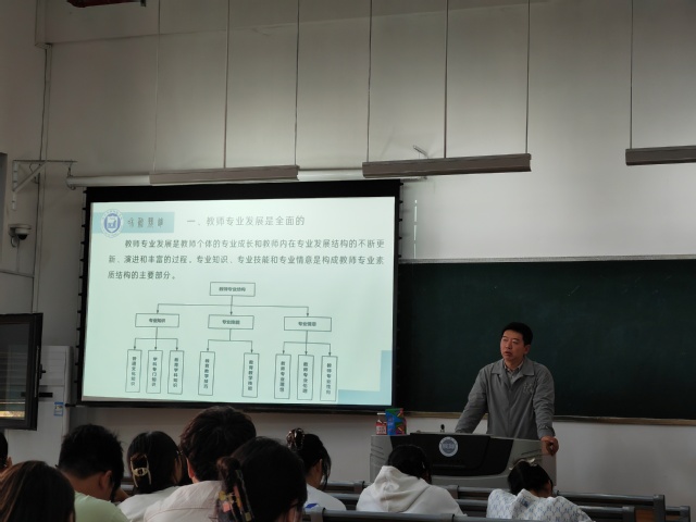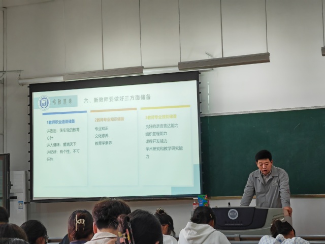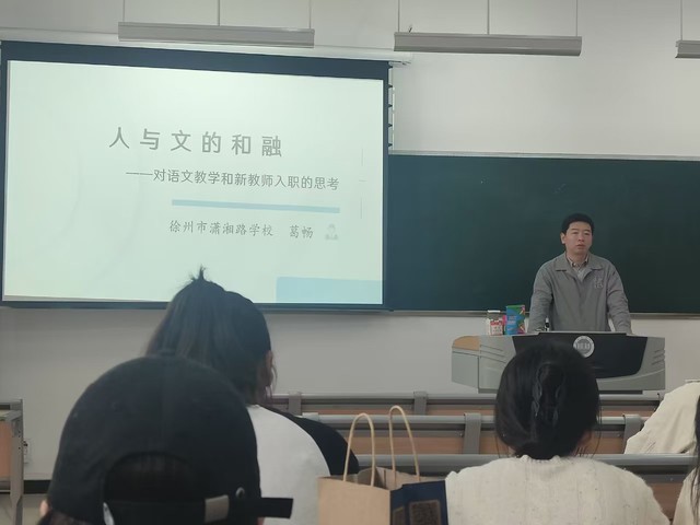 10月16日下午,云龙区潇湘路学校校长葛畅在求真楼202教师为我院21汉语言文学(师范)专业学生作了题为《人与文的和融——对语文教学和新教师入职的思考》的讲座。