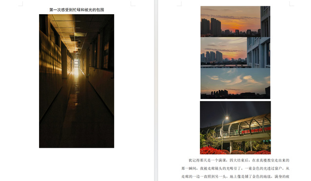 活动以“初遇大学”为主题,鼓励学生用文字记录自己在大学里不一样的第一次。参赛作品内容丰富多样,包括校园风光、同学间的友情、运动场上的激情以及各种校园文化活动等。每一幅作品都充满青春的气息,积极展现大学生积极向上的精神风貌。该活动让步入大学的新生在摄影中学会用心观察生活中的每一个细节,更加坚定他们继续摄影创作的决心。